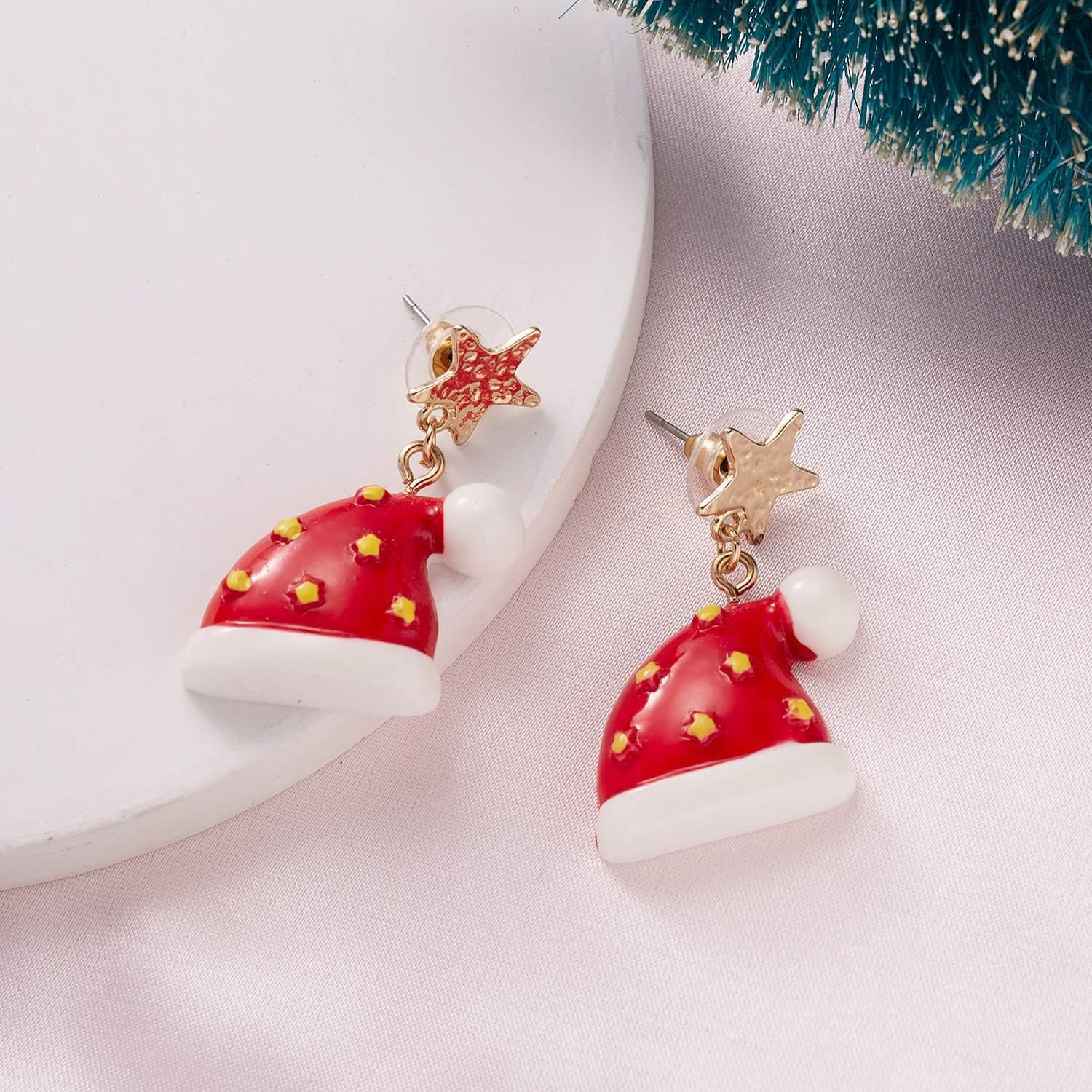 Örhängen med guldplätering tomteluva med gula stjärnor