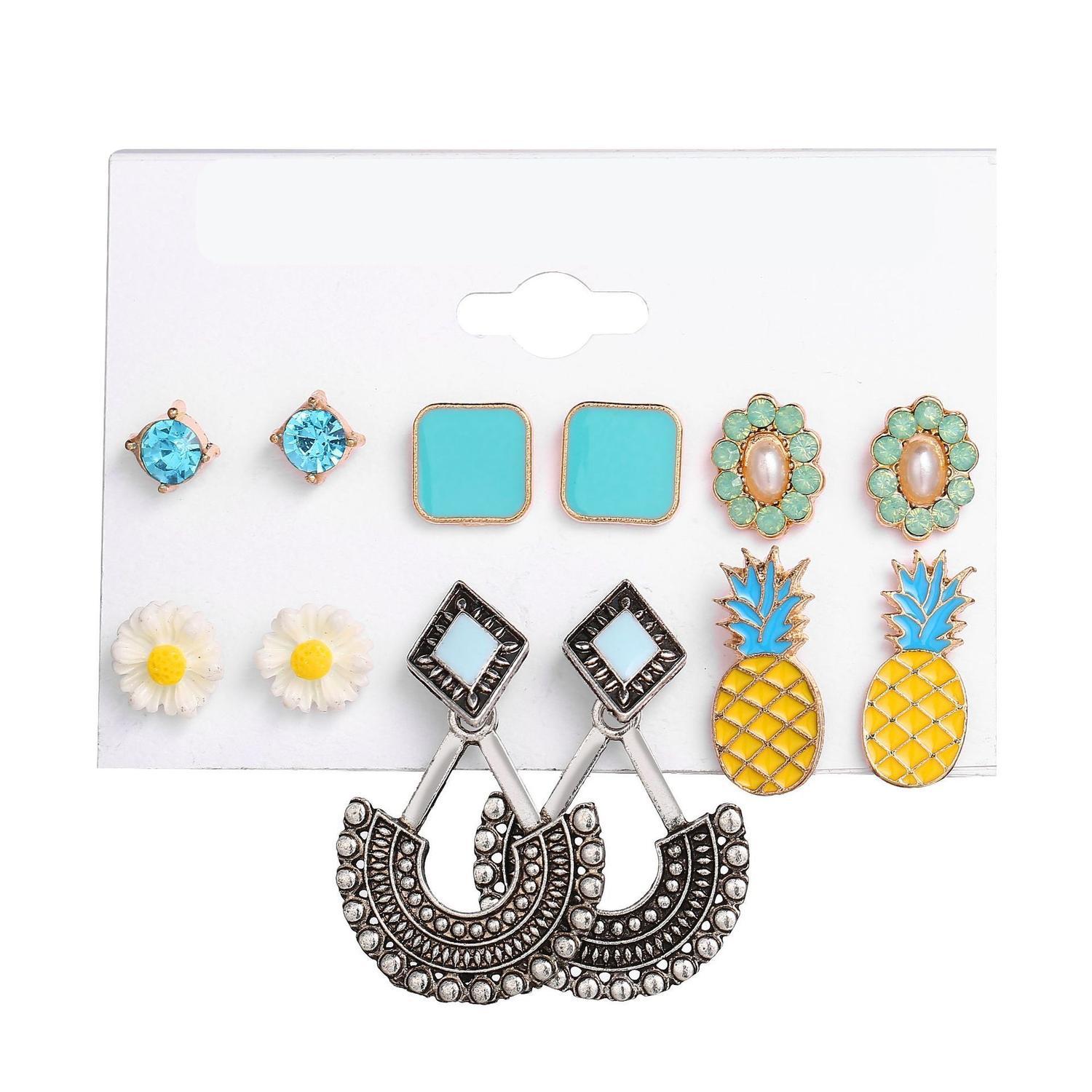 Örhängen set á 6 stk guldpläterade ananas orientaliskt turkos