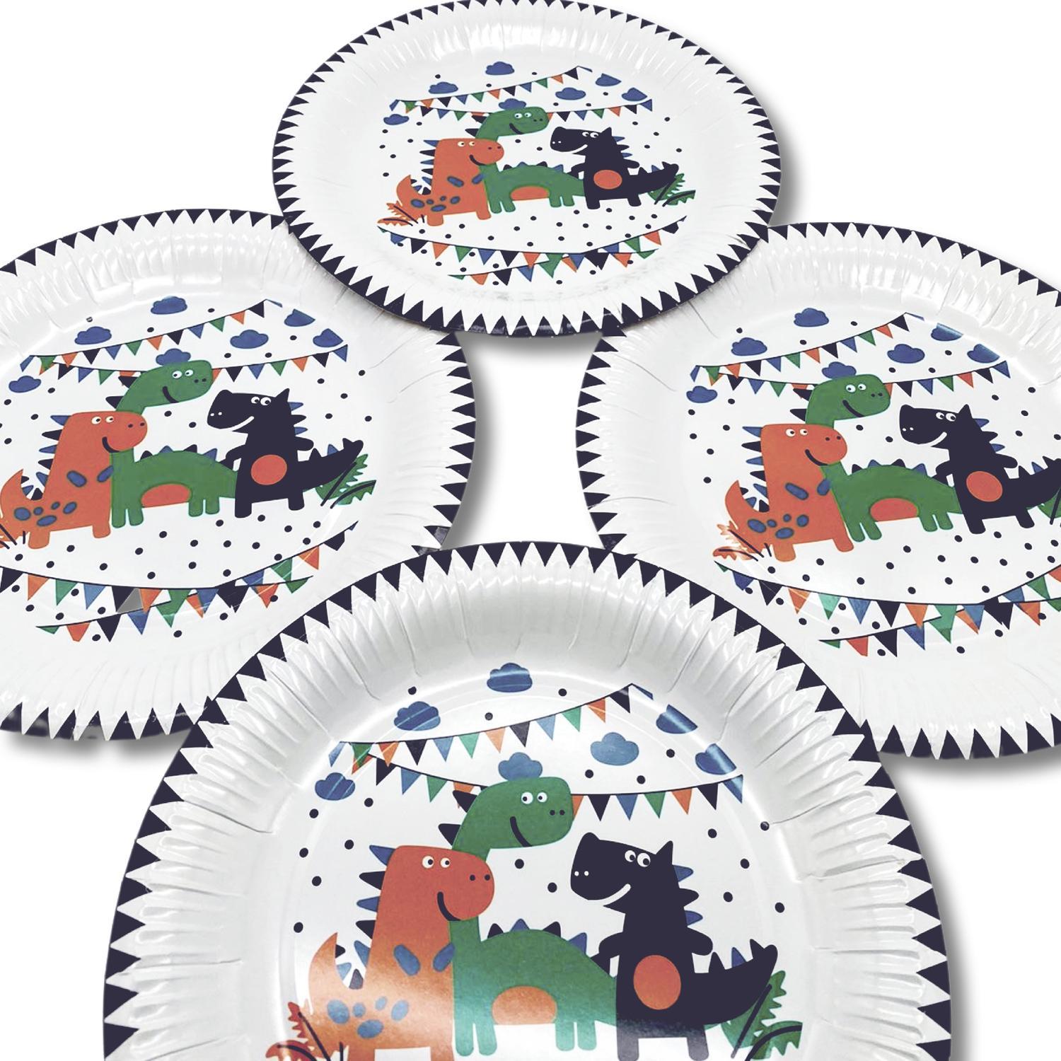 Papperstallrik & Girlang med dinosaurier på fest 6-pack