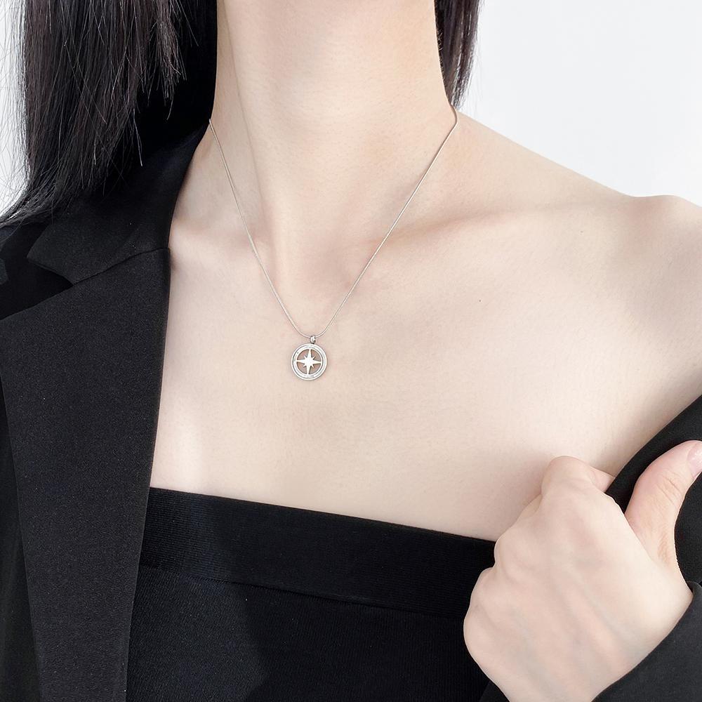 Personlig gåva förgyllt halsband kompass stjärna rostfritt stål
