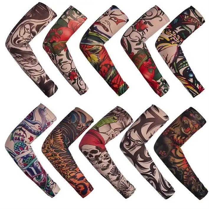 Punk Skalle Tribal Tro Totem UV-skydd ärmar Hip Hop Kroppsdekoration Tillfälliga Helbens- och Armtatueringsärmar