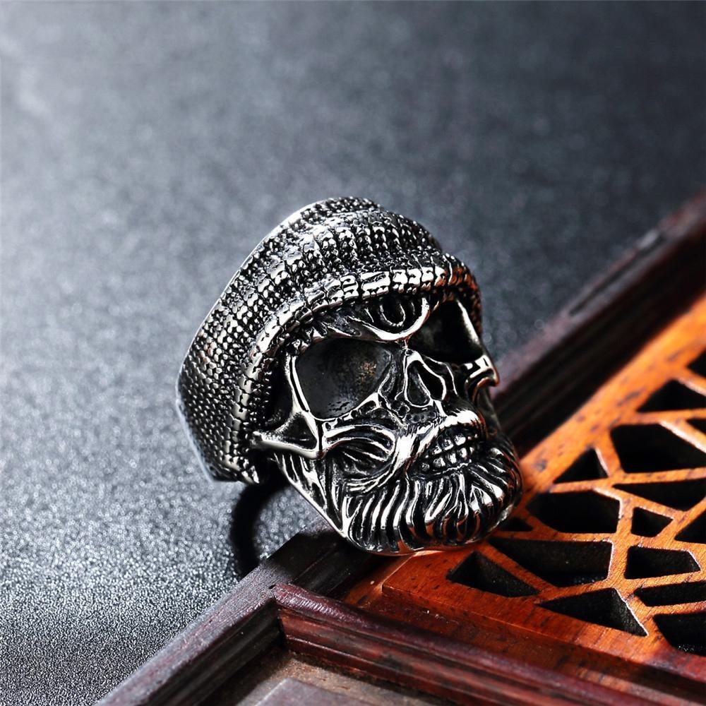 Ring med skelett rostfritt stål kranium med mössa punk rock