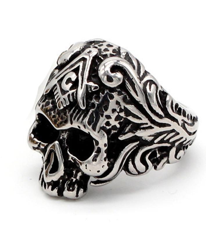 Ring med skelett rostfritt stål kranium punk rock masonic