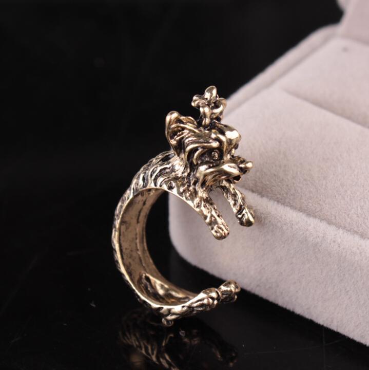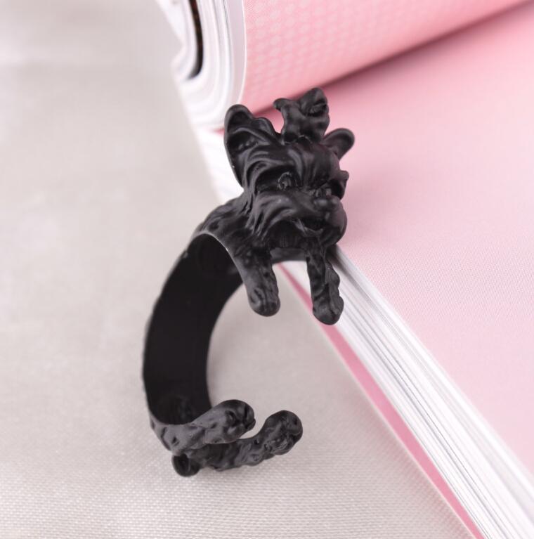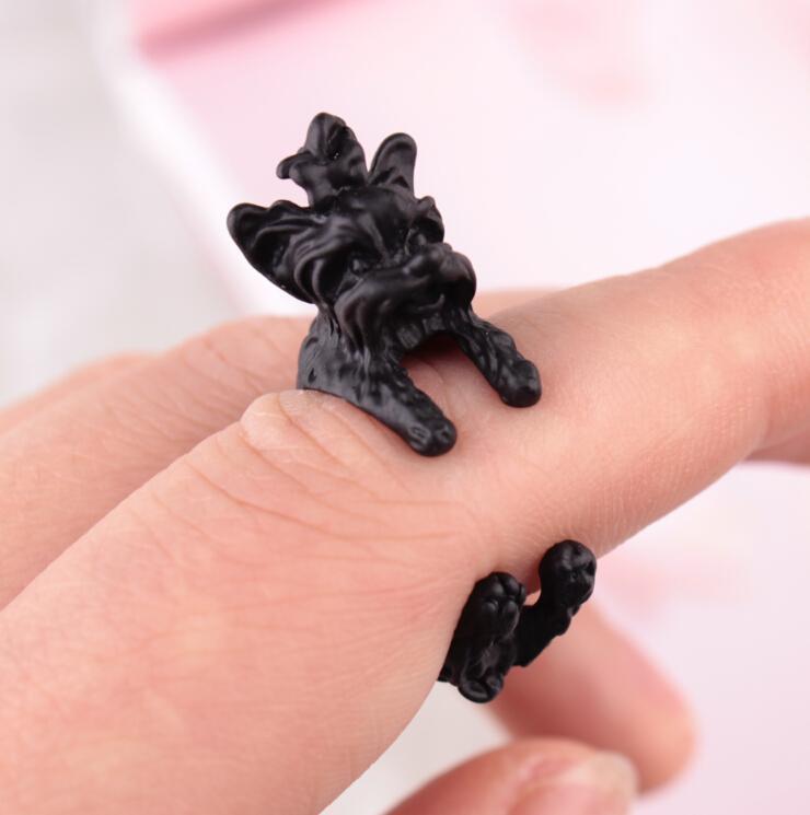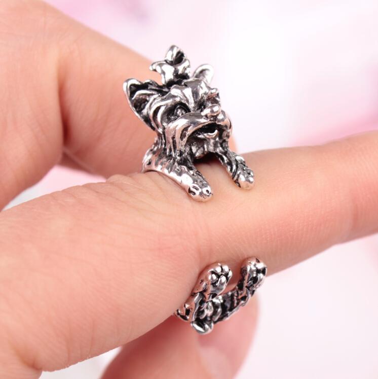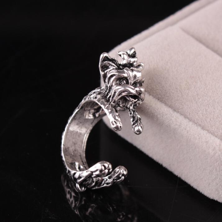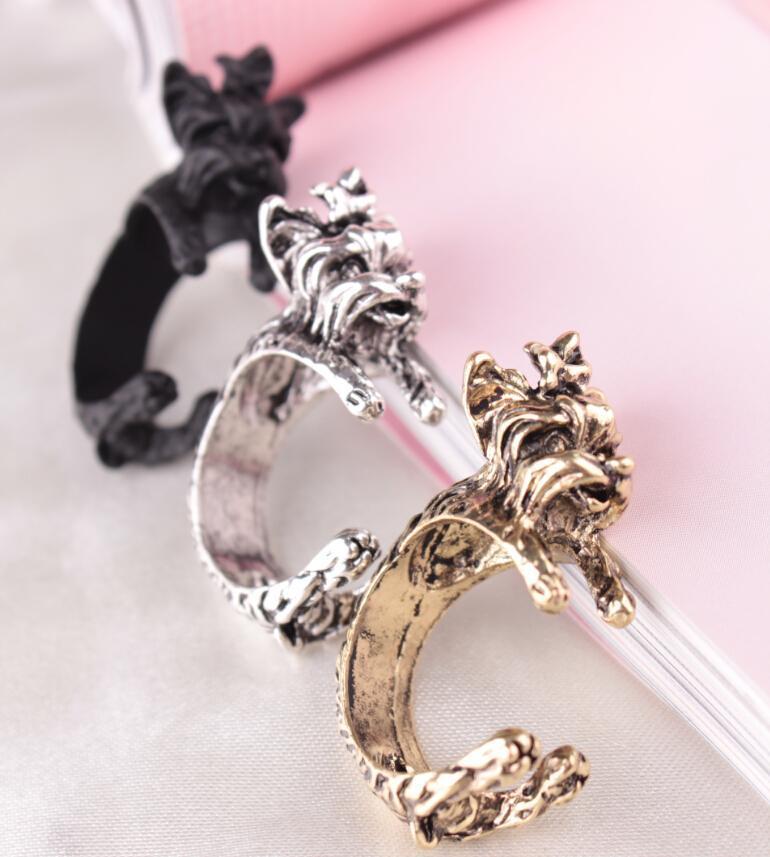 Ring med terrier hund som kramar fingret guld, silver och svart
