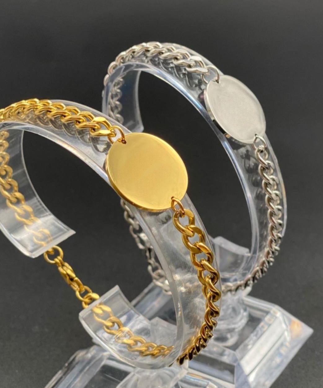 Rostfritt Stål Armband med Medaljong - 20,5 cm Längd, 2 x 2 cm Medaljong