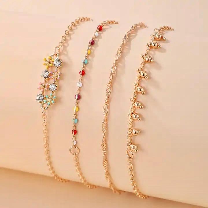 Set á 4 stk orientaliska rhodiumpläterade armband med stenar smycken