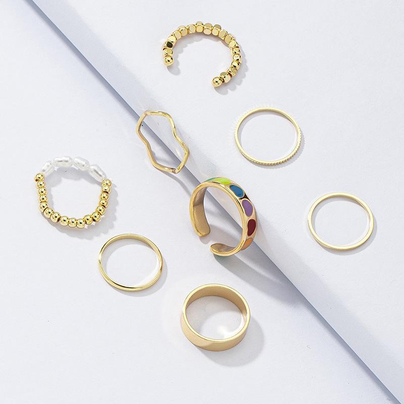 Set m 8 stk 18 k Guldpläterade ringar färgade hjärtan pärlor