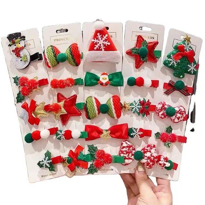 Set of hair clips with a Christmas theme, Christmas tree, Santa, star, snowman