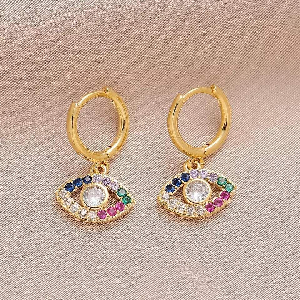 Små snygga örhängen ögon nazar i flera färger strass guld