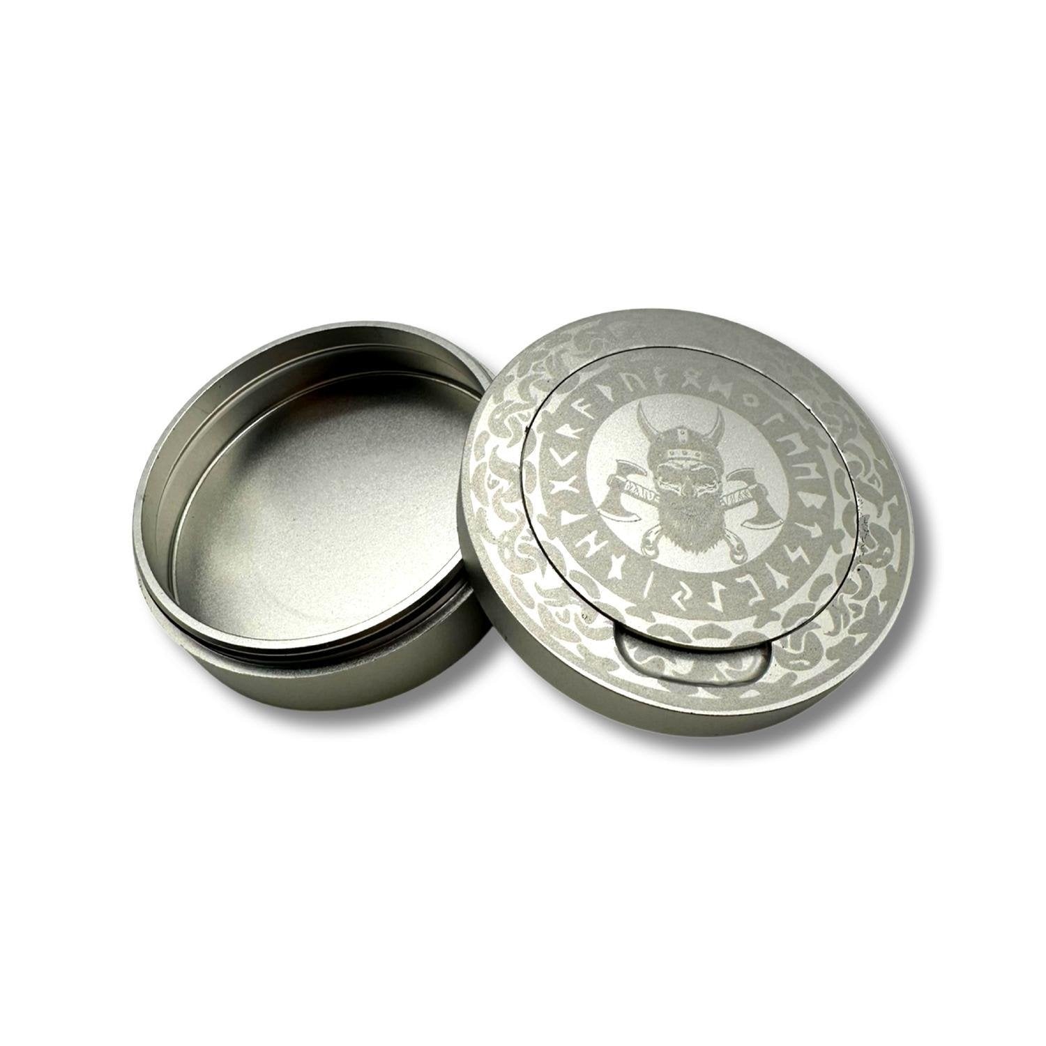 Snusdosa i aluminium för alla snus med fack viking fornskrift