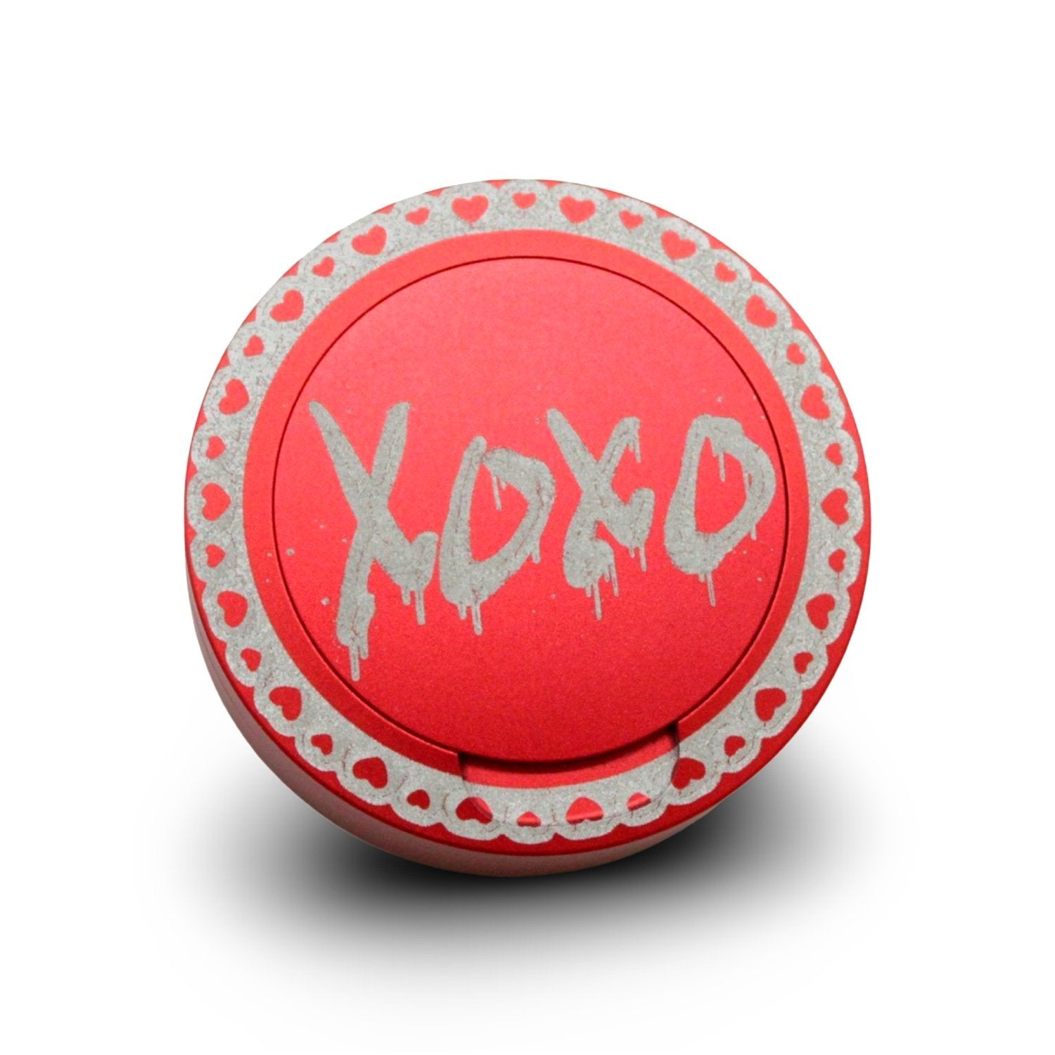 Snuff box in red aluminum for all snus - XOXO with hearts