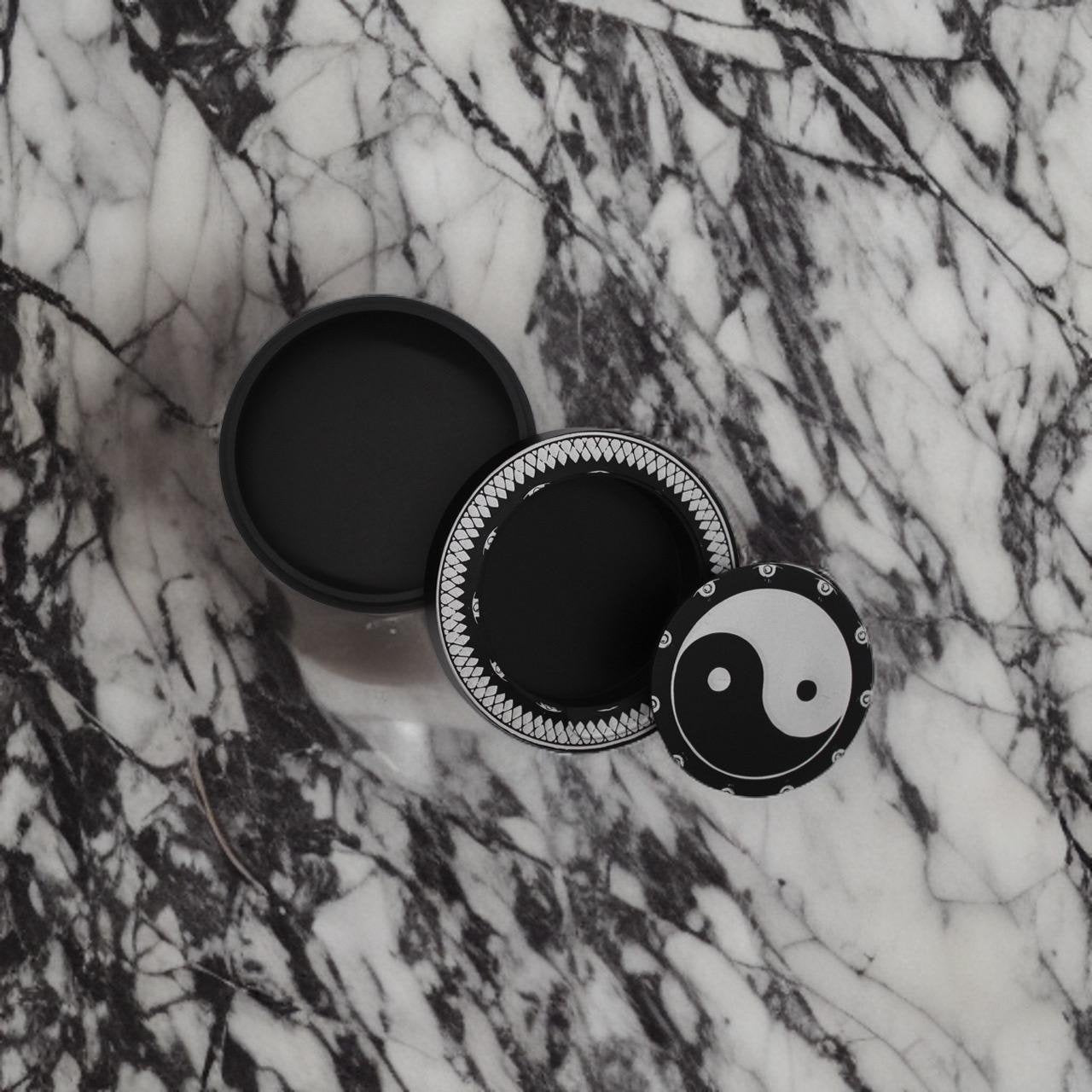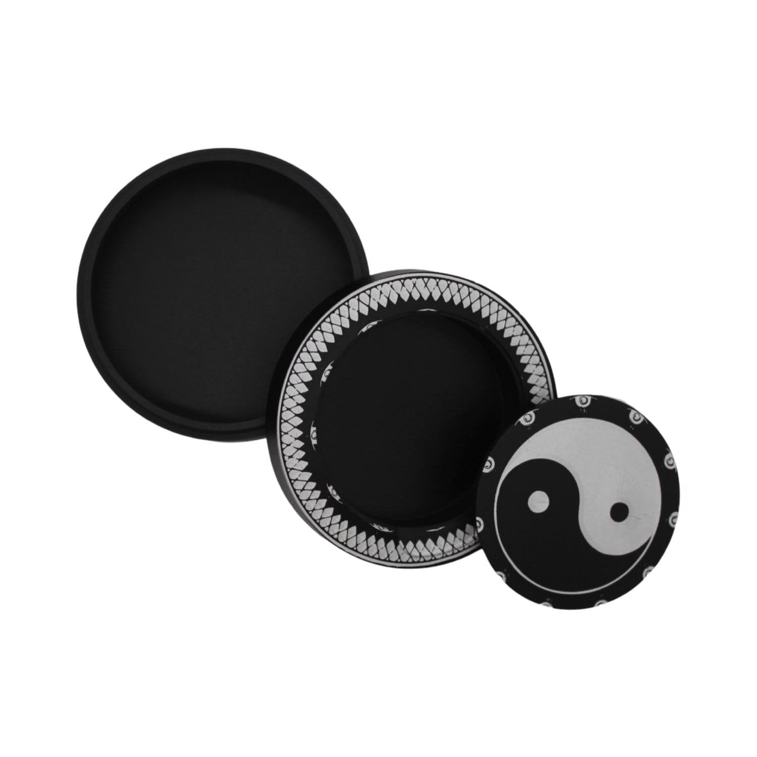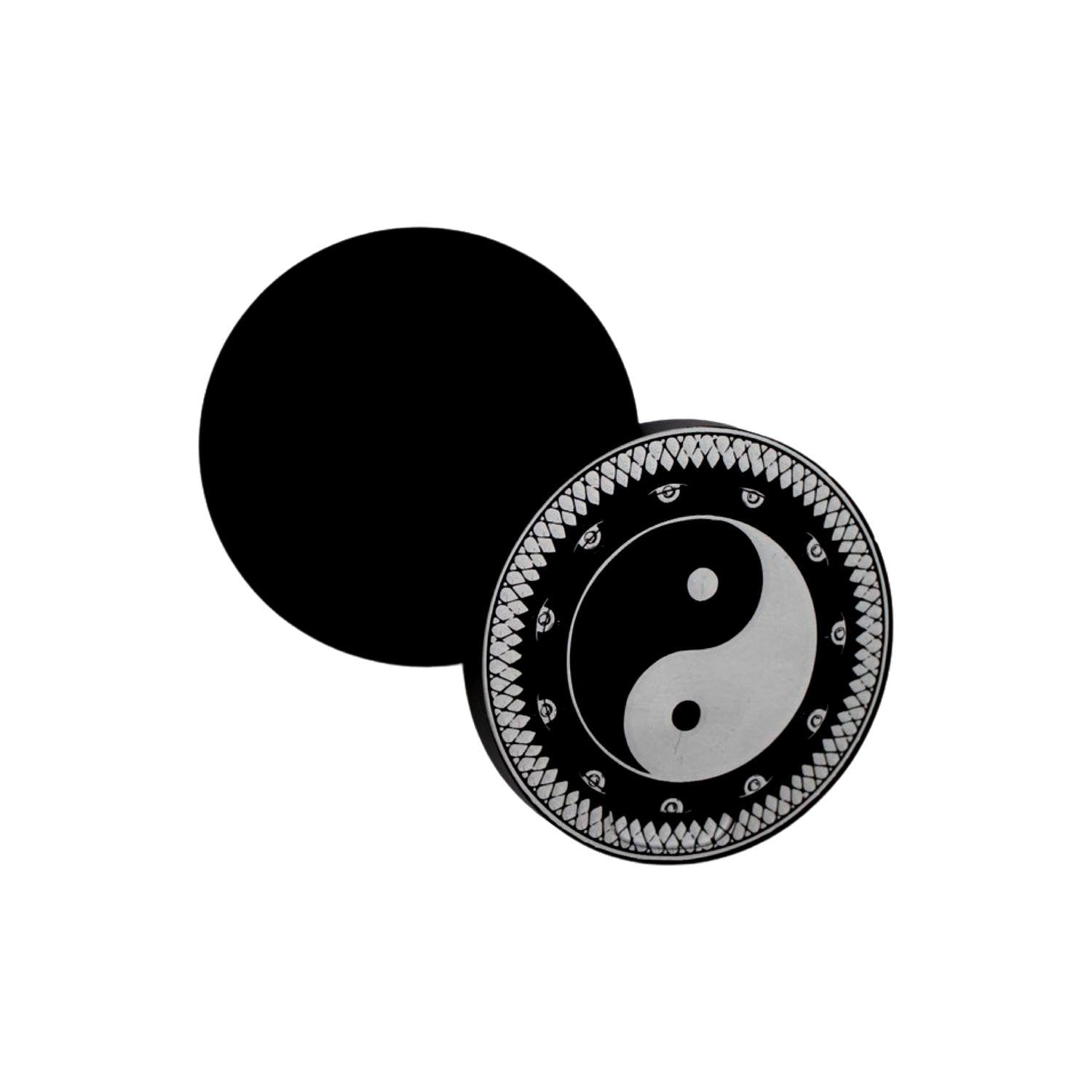 Snusdosa i svart aluminium för alla snus - zhen ying yang ögon vit