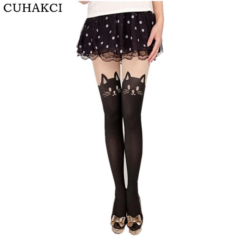 Söta nylon strumpbyxor med katter på framsidan anime tjej