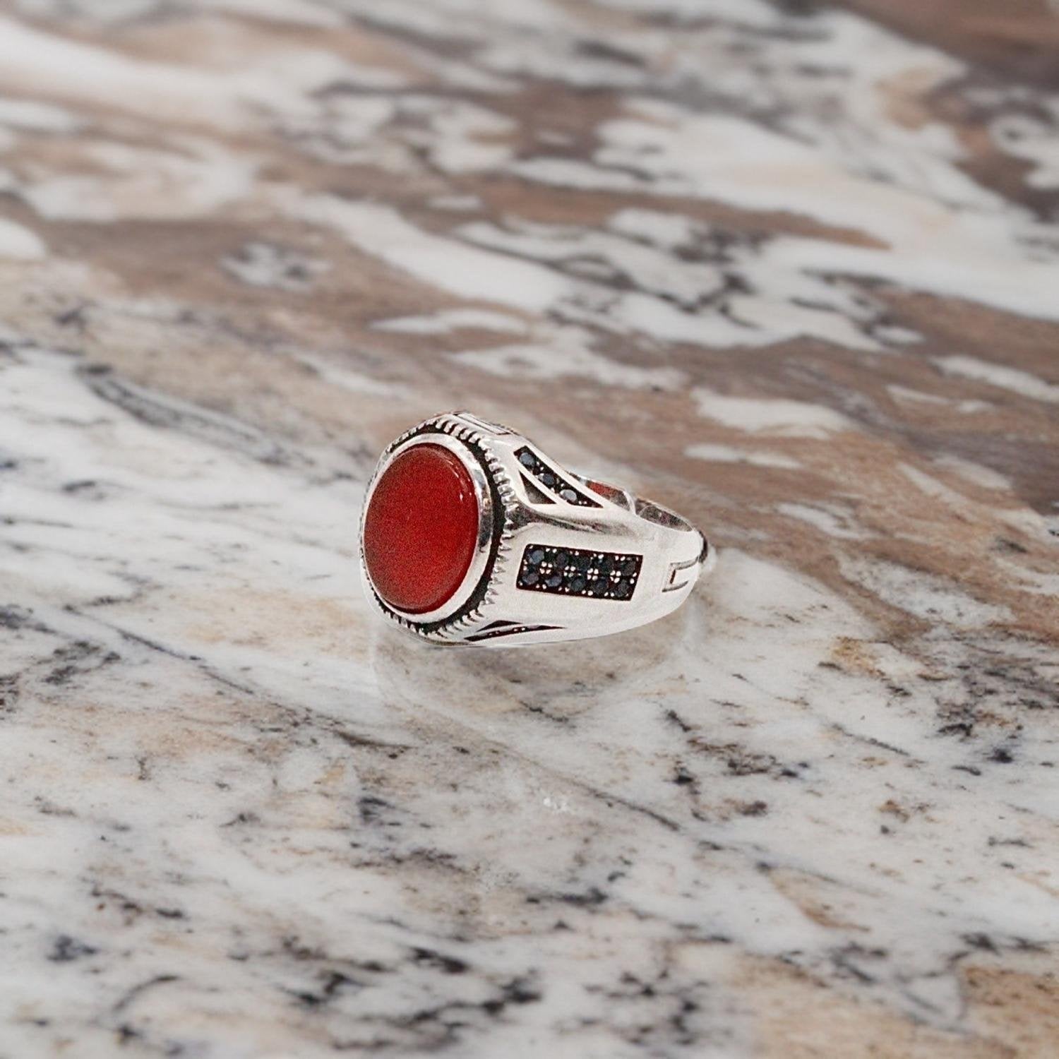 Sterling silver ring äkta orange opal sten persisk klackring för män