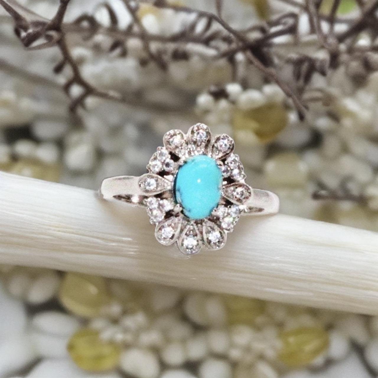 Sterling silver ring orientalisk äkta turkos oval sten samt zirconia stenar