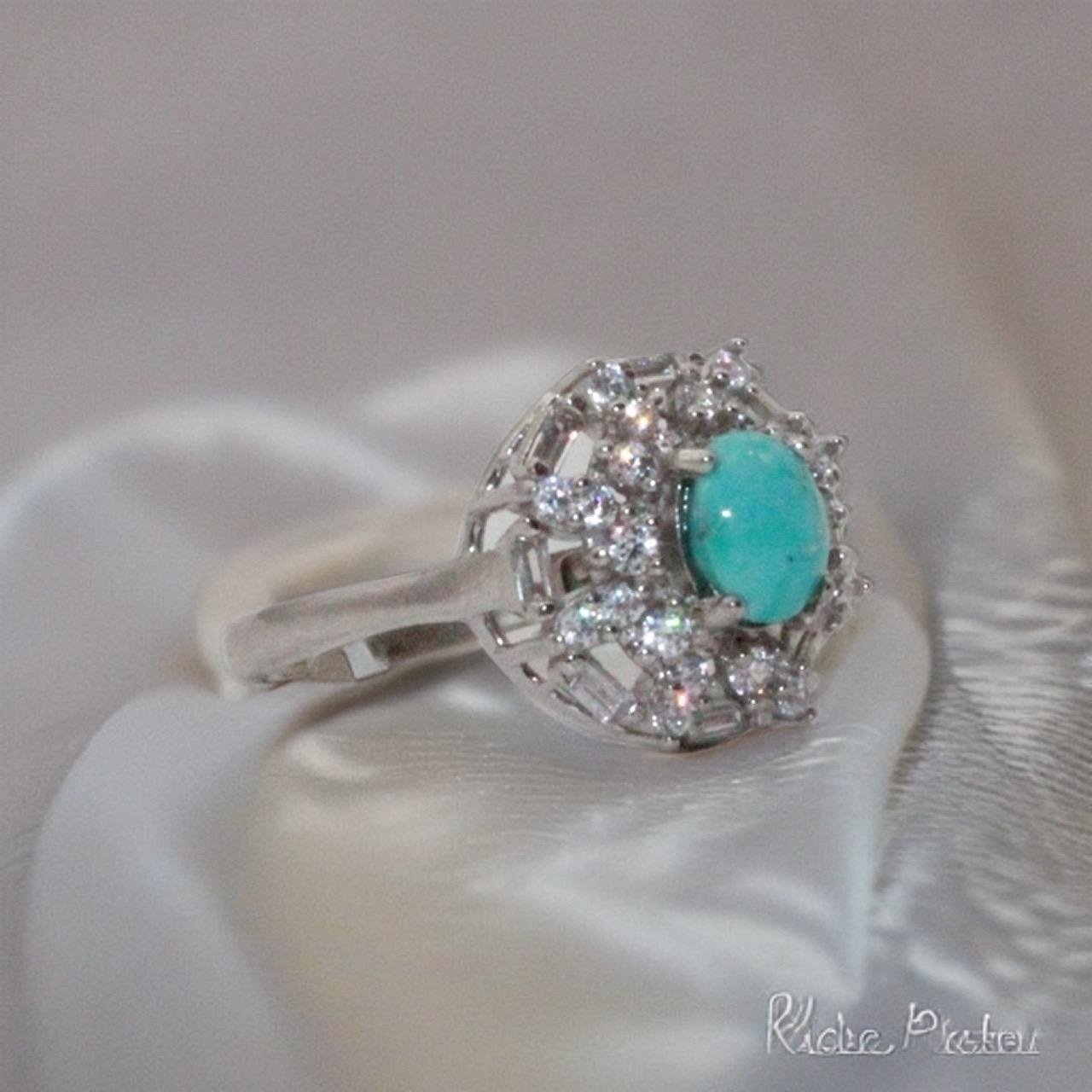 Sterling silver ring orientalisk äkta turkos sten samt zirconia stenar