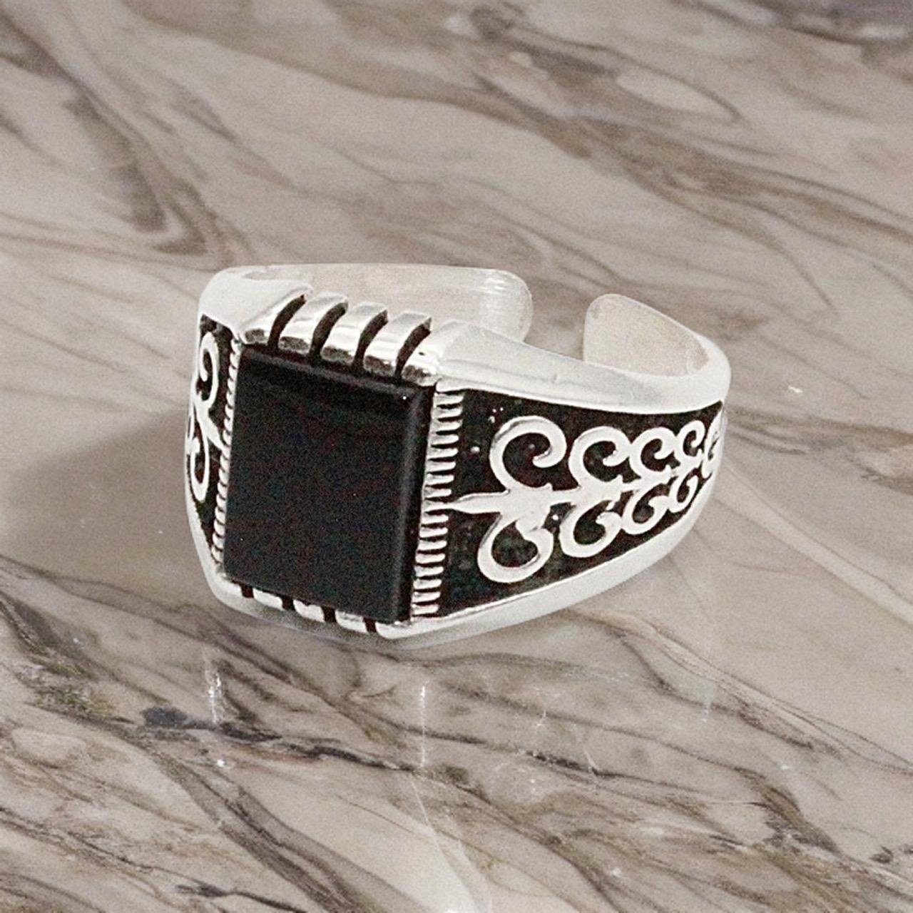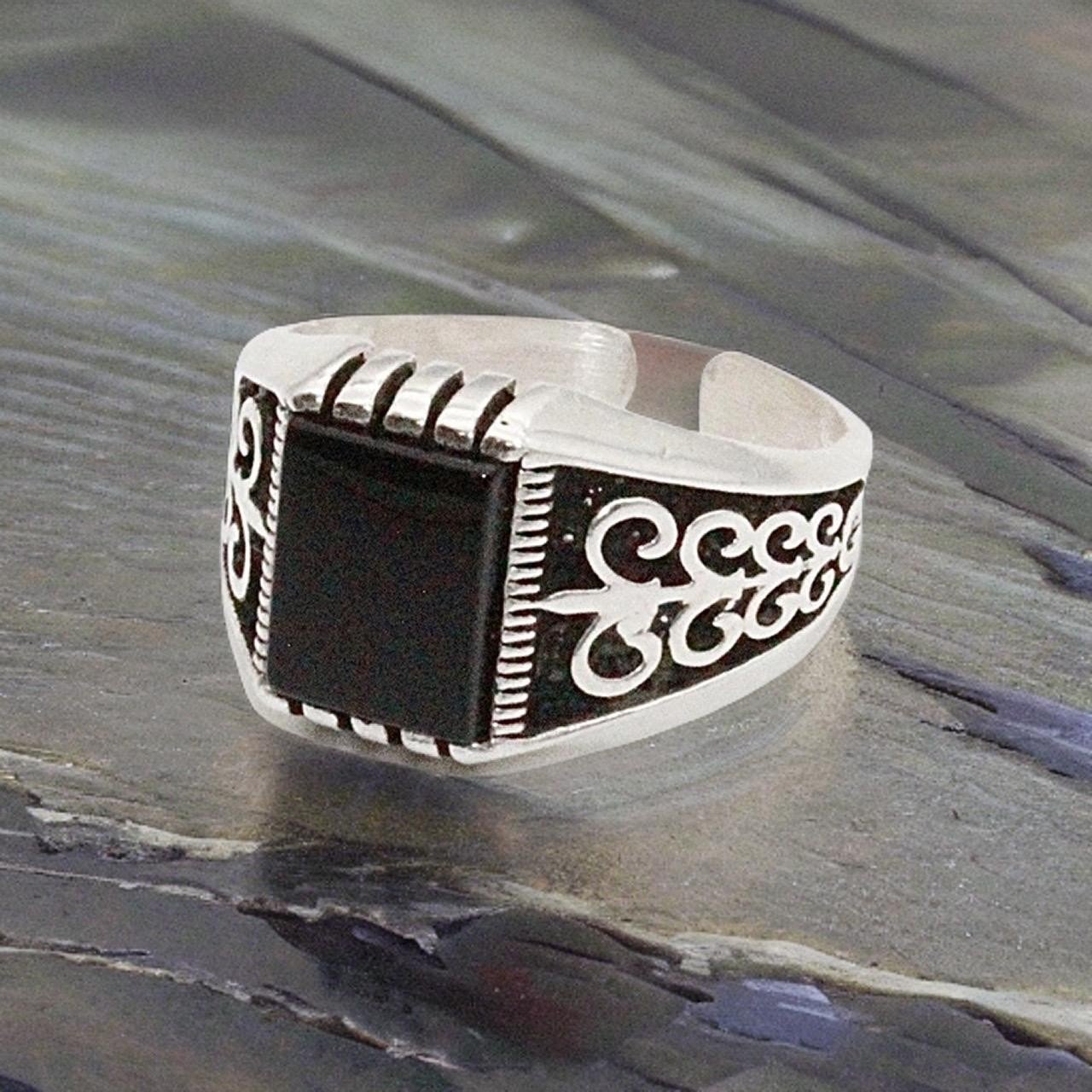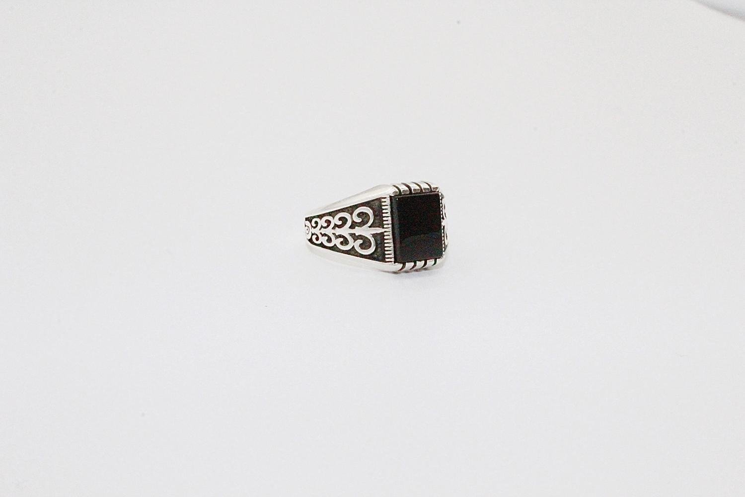 Sterling silver ring svart sten orientaliskt mönster klackring för män