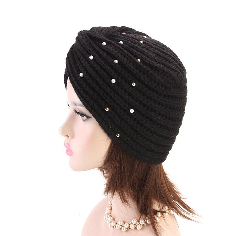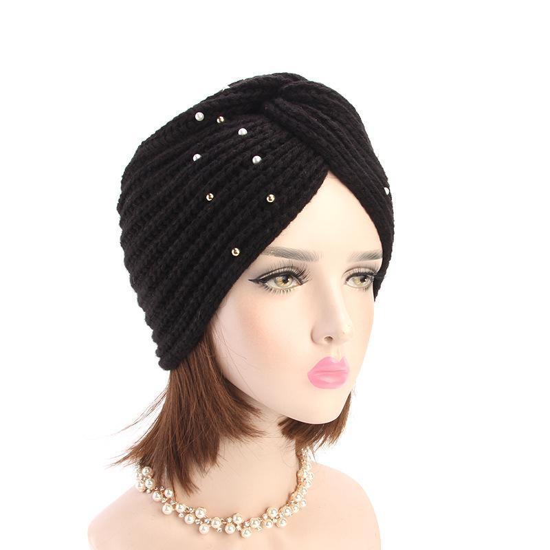 Stickad turban med pärlor perfekt på vinter höst flera färger