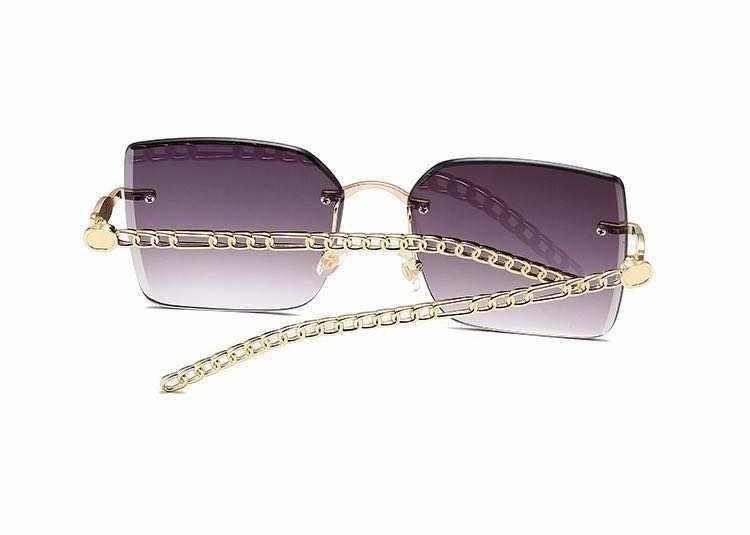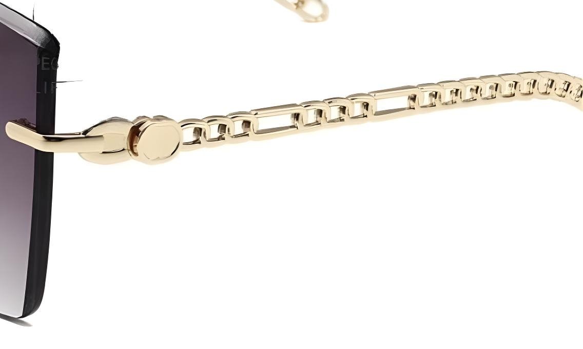 Stora lyxiga solglasögon med kvadratiska glas och flätat guldtempel