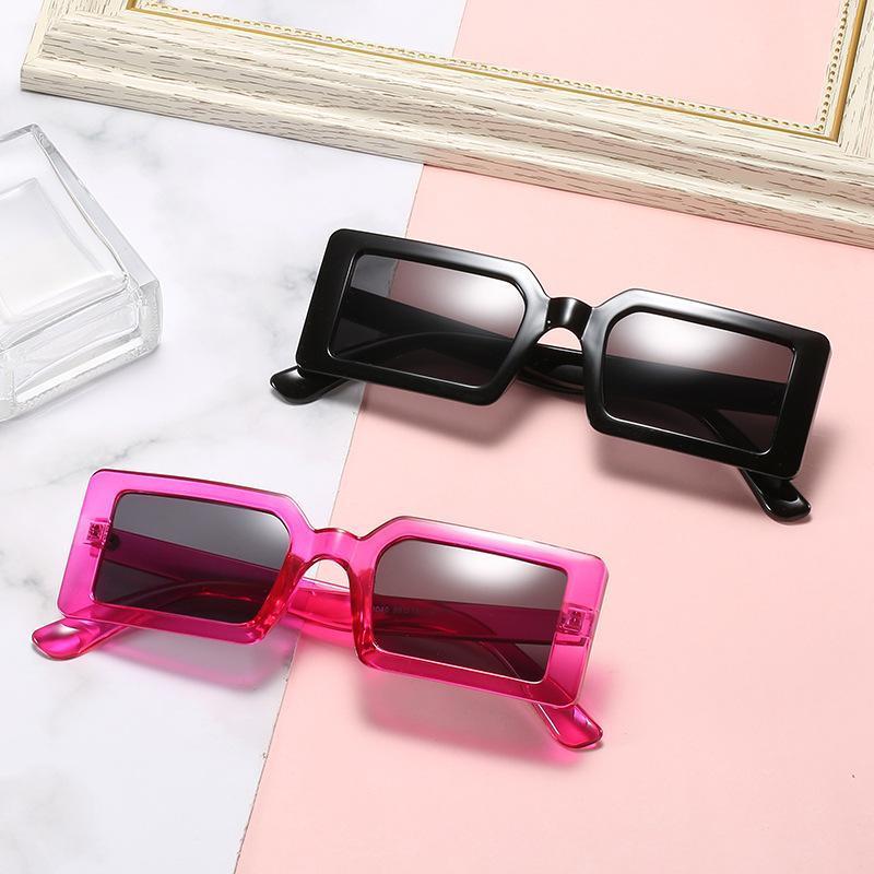 Trendiga solglasögon med rektangulära bågar i rosa svart