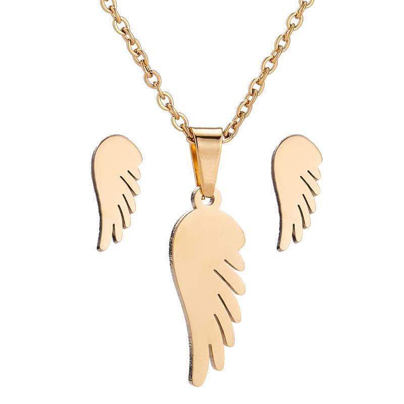 Trendigt set örhänge halsband änglavinge 14k guldpläterade guld