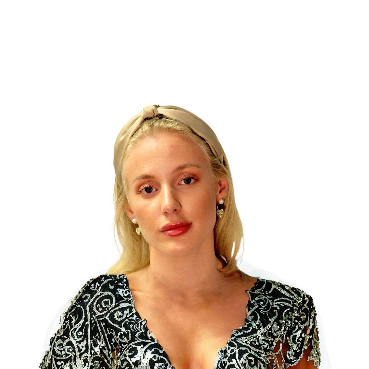 Vackert brett diadem i satin med knut och spänne med diamanter