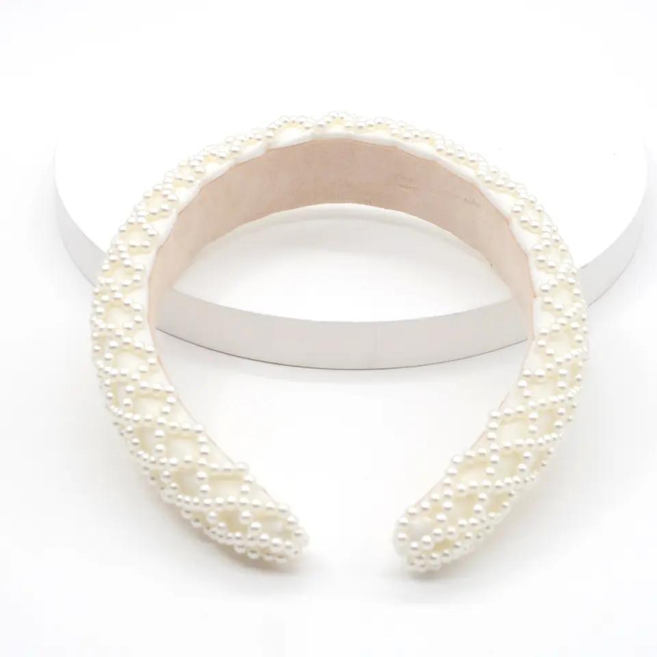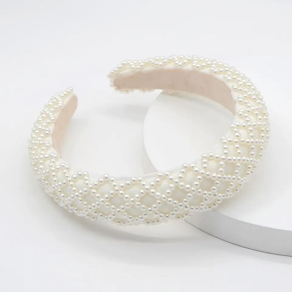 Vackert brett diadem med flätade pärlor i mönster klassiskt