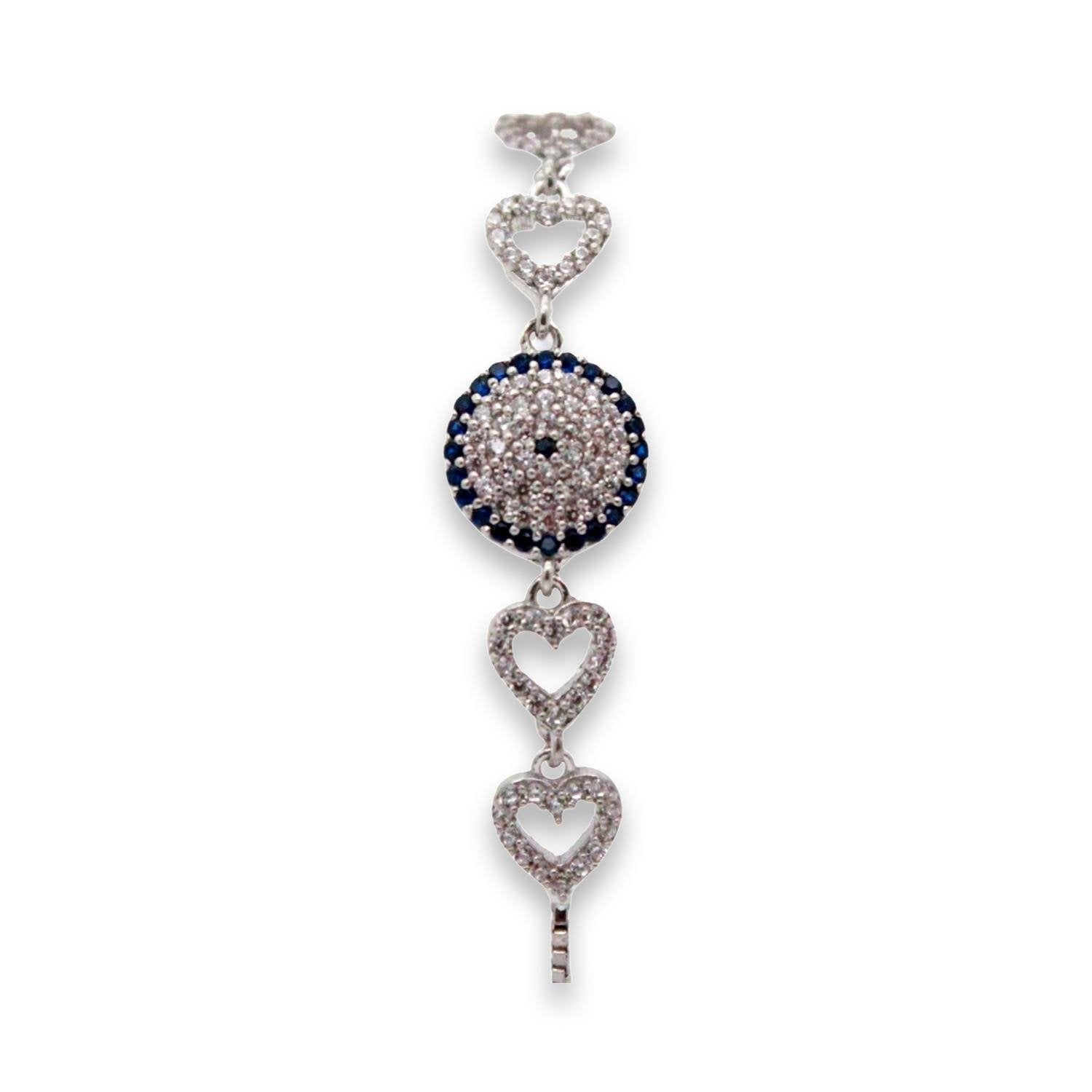 Genuine sterling silver bracelet with heart zirconia stones nazar