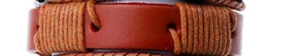 Brown/orange bracelet in genuine leather with strings