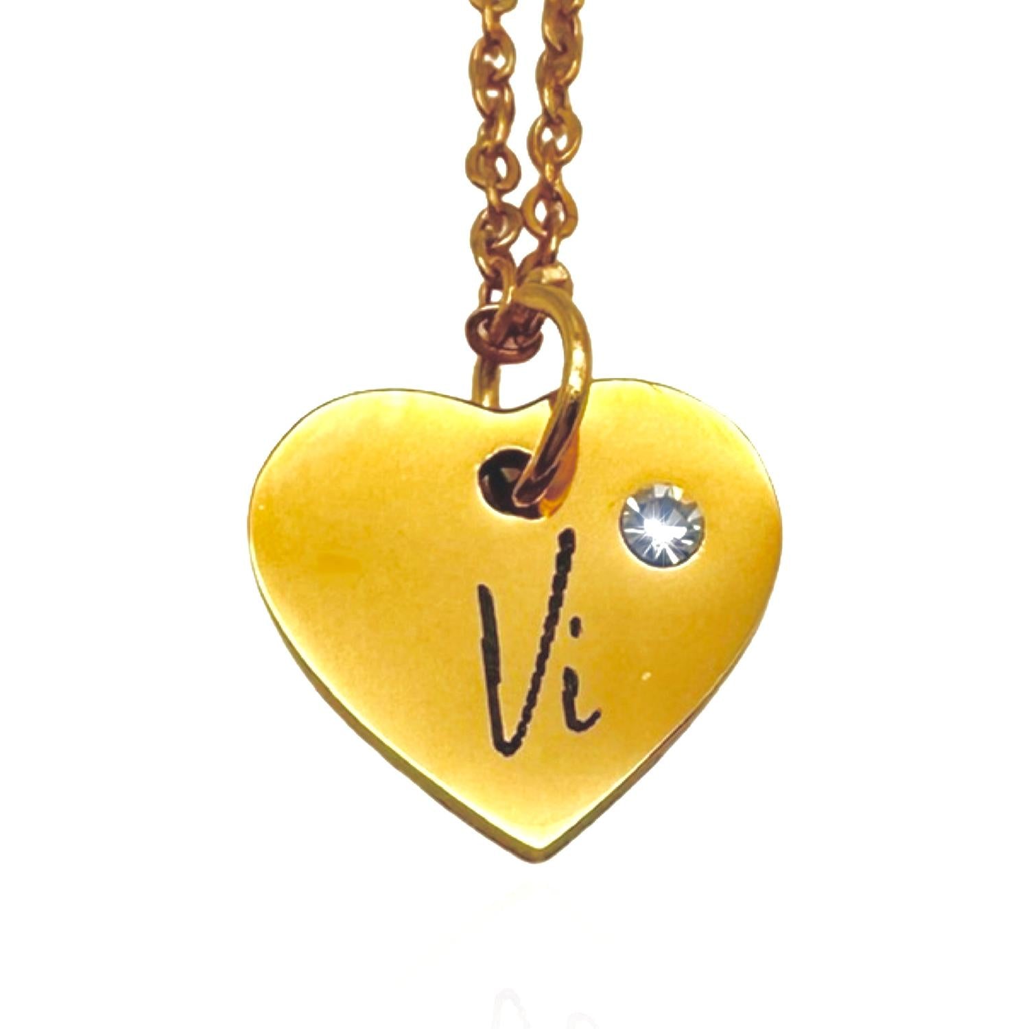 Gilded tray ''We'' heart gold stone necklace chain Valentine's Day