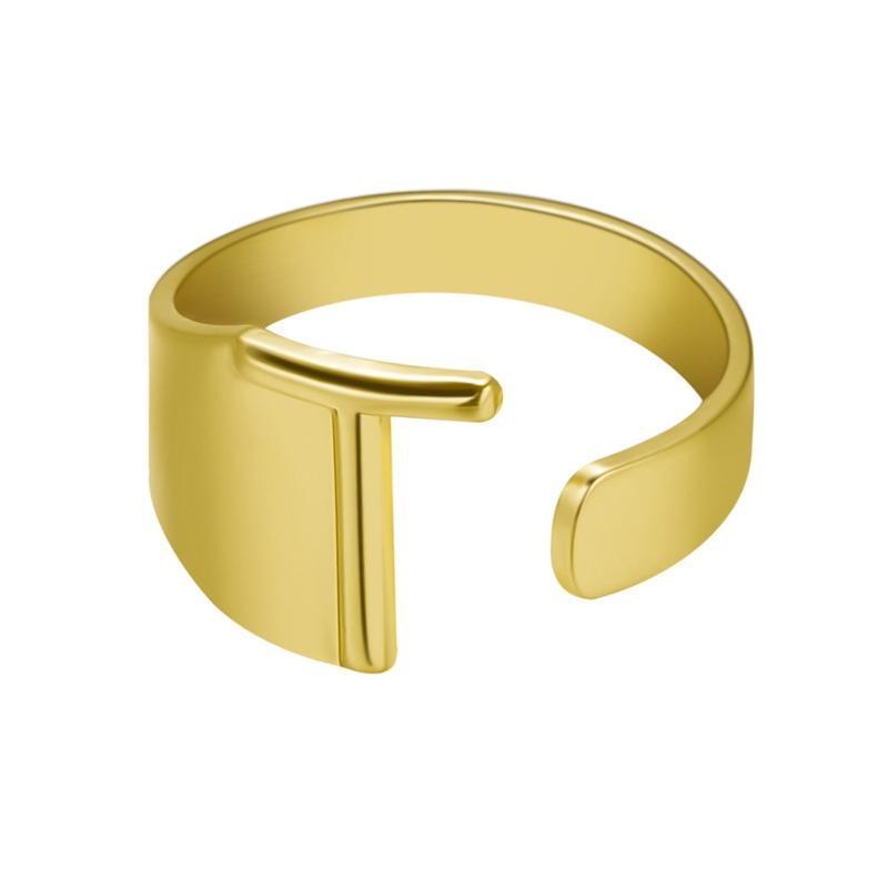 Guldpläterad ring med bokstäver minimalistisk justerbar