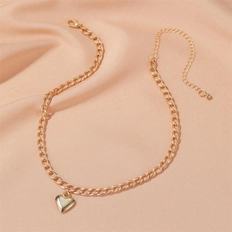 Gold plated necklace chain choker in gold heart charm