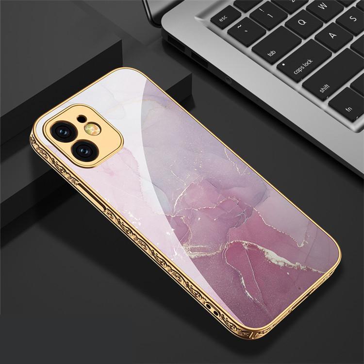 iPhone 12 Pro luxury glass case gold baroque pink marble pattern