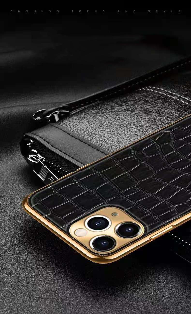 iPhone 12 Pro Max Cover Genuine Leather Crocodile Pattern Gold Plated High Luxury