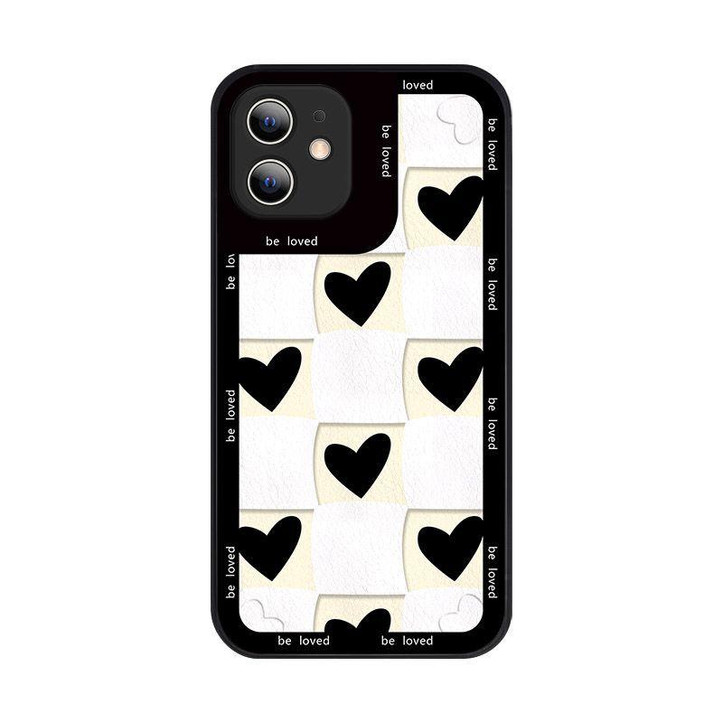 iPhone 13, Pro & Max soft shell black white checkerboard hearts
