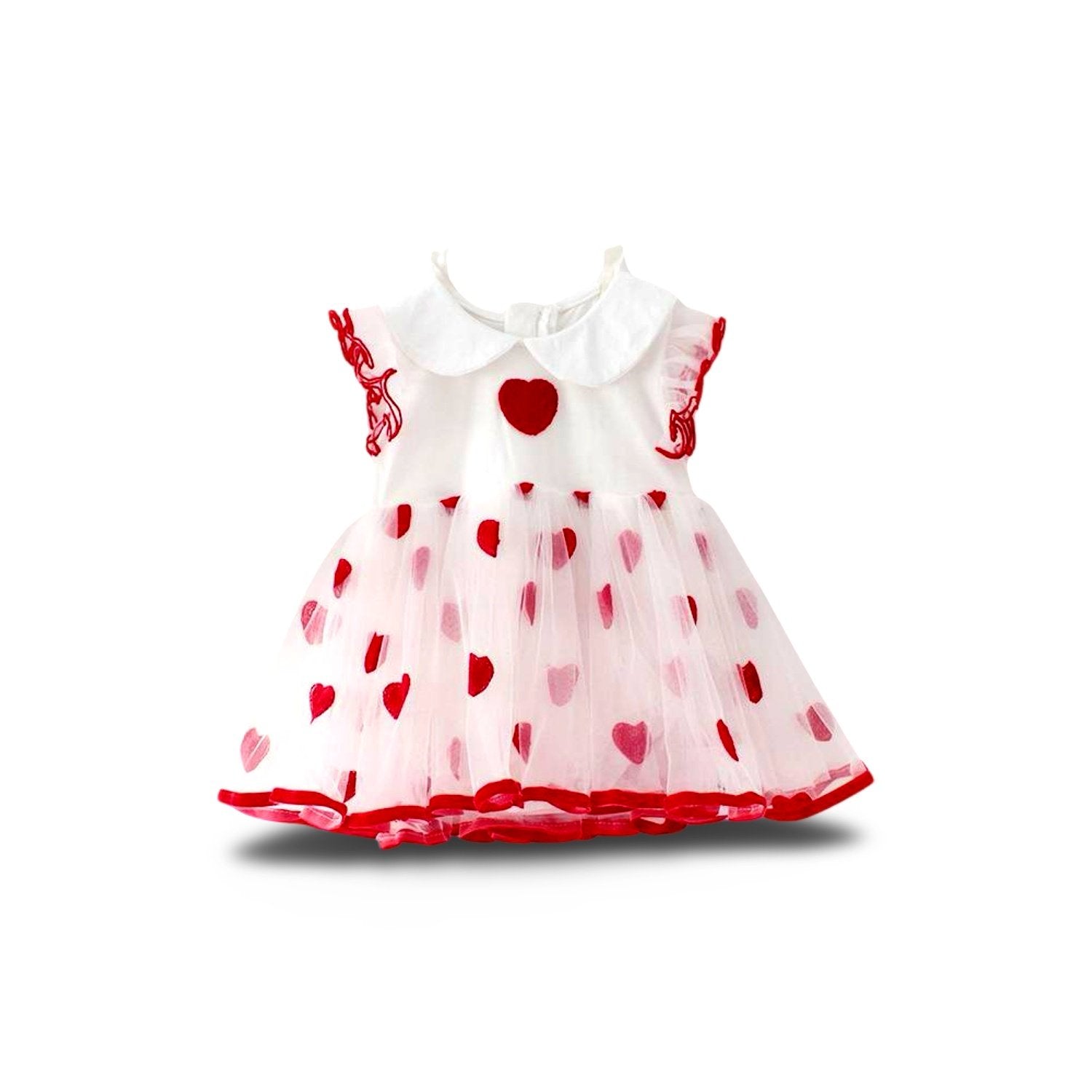 Incredibly cute dress with tulle red hearts collar white