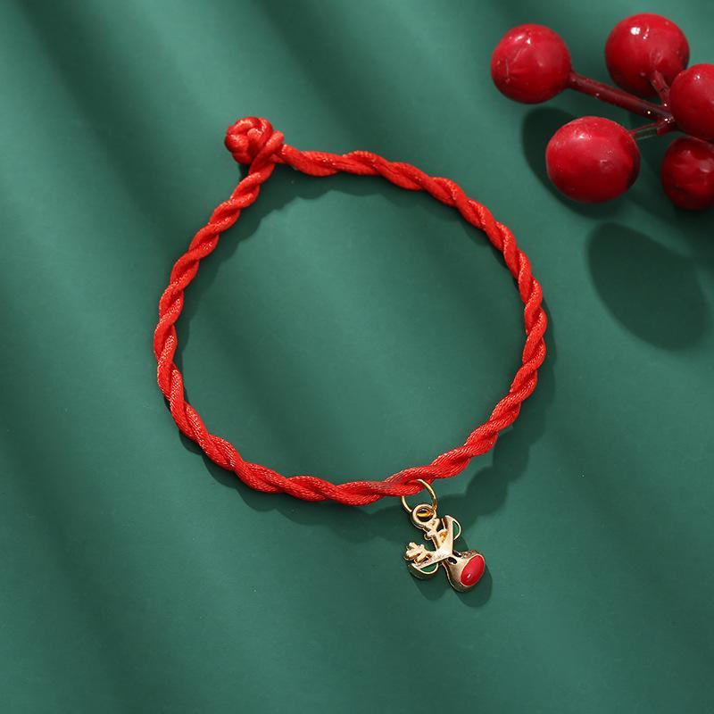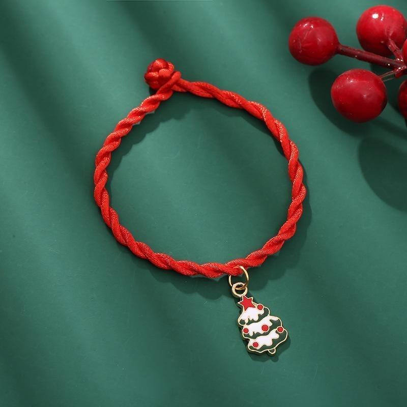 Handmade woven bracelet with Christmas motif red snow fir
