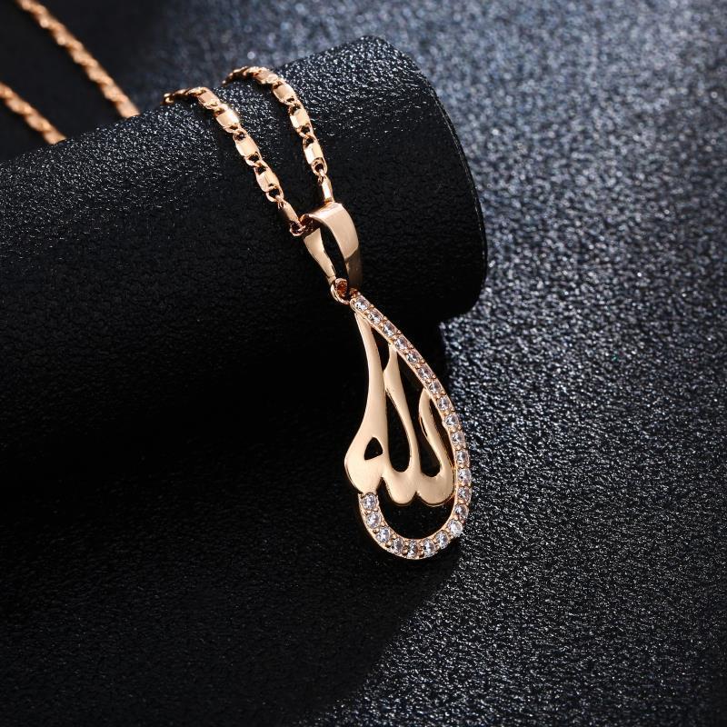 18k guldpläterad kedja smycke vattendroppe kristall islam allah
