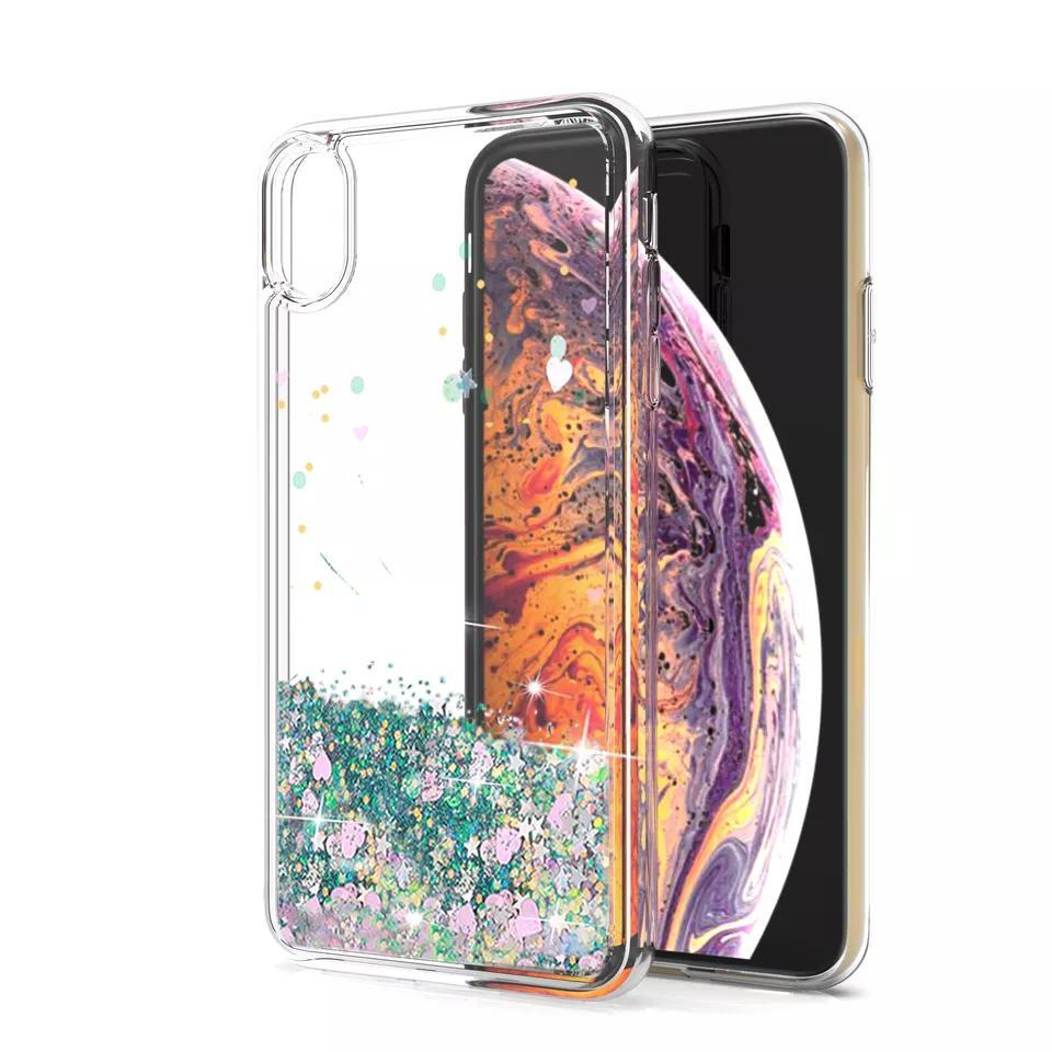 iPhone 14 skal med flytande hjärtan likt kvicksand glitter
