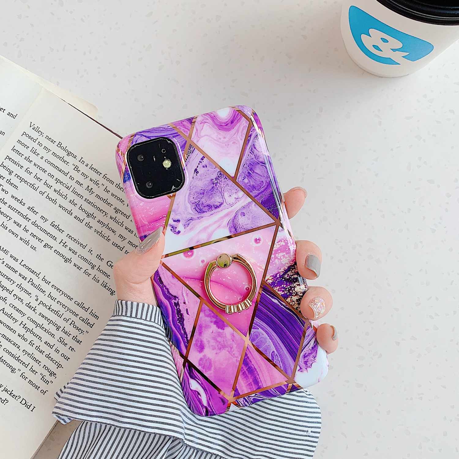 Mobile cover for iPhone 11 with various marble patterns + ring holder - Pink