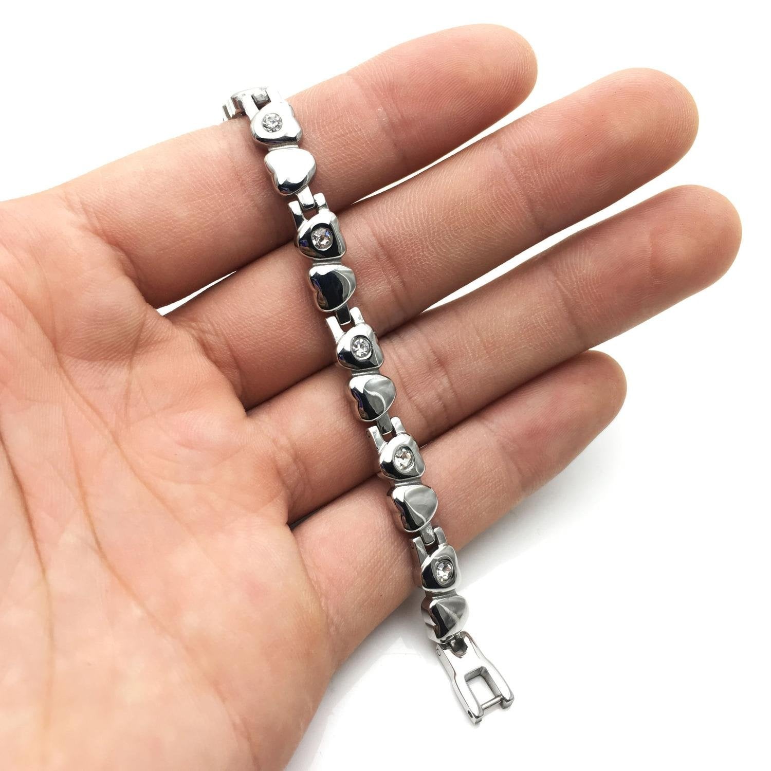 Noorzai Scandinavia- Armband i silver m hjärtan och kristaller Magnetterapi