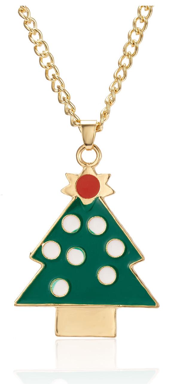 Beautiful fun necklace with Christmas tree balls star Christmas green